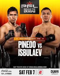 PFL Dubai kicks off the promotion’s 2026 season with a featherweight main card bout between former PFL champion Jesus “El Mudo” Pinedo and unbeaten Kazakh prospect Salamat Isbulaev. Pinedo, the 2023 PFL featherweight titleholder known for his striking power and shocking upsets, returns after a submission loss in 2025, aiming to reclaim momentum against a rising star. Isbulaev, a finisher with a 100% finish rate, makes his PFL debut following a dominant run in regional circuits, looking to announce himself on the big stage. This three-round clash replaces no prior booking but promises fireworks on a card headlined by Usman Nurmagomedov defending his lightweight title against Alfie Davis.